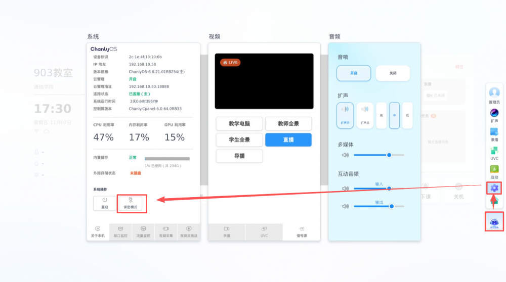 - 开启保密模式后,外部无法通过平台查看本地摄像头以及本地音频,并且录播无法录制