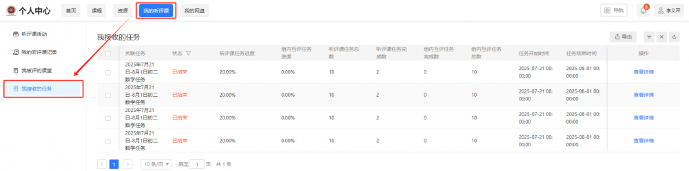 - 我的听评课:用于创建听评课活动、查看听评课记录、被评课堂记录与接收的听评课任务