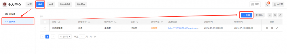 ::点击教研工作台-资源管理-课程资源管理-点击创建 | |||