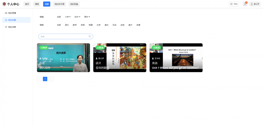 ::'''课程:'''用于创建资源平台课程上传,直播课创建 | |||