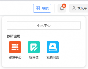::'''导航:'''快速进入各应用,听评课前台、资源中心前台、网盘等 | |||
