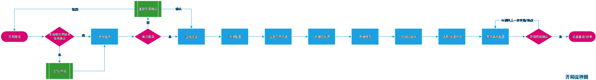 该功能可用于快速实现设备上云、微应用加载/启动、录播、矩阵功能基本参数配置,从而实现快速开局。 | 该功能可用于快速实现设备上云、微应用加载/启动、录播、矩阵功能基本参数配置,从而实现快速开局。 | ||