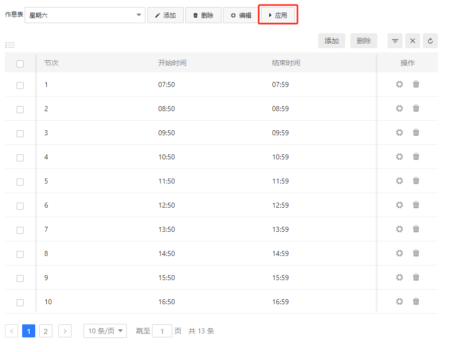 若夏时令、冬时令作息表无法满足特殊日作息表,请点击添加作息表,选择新作息表后点击应用