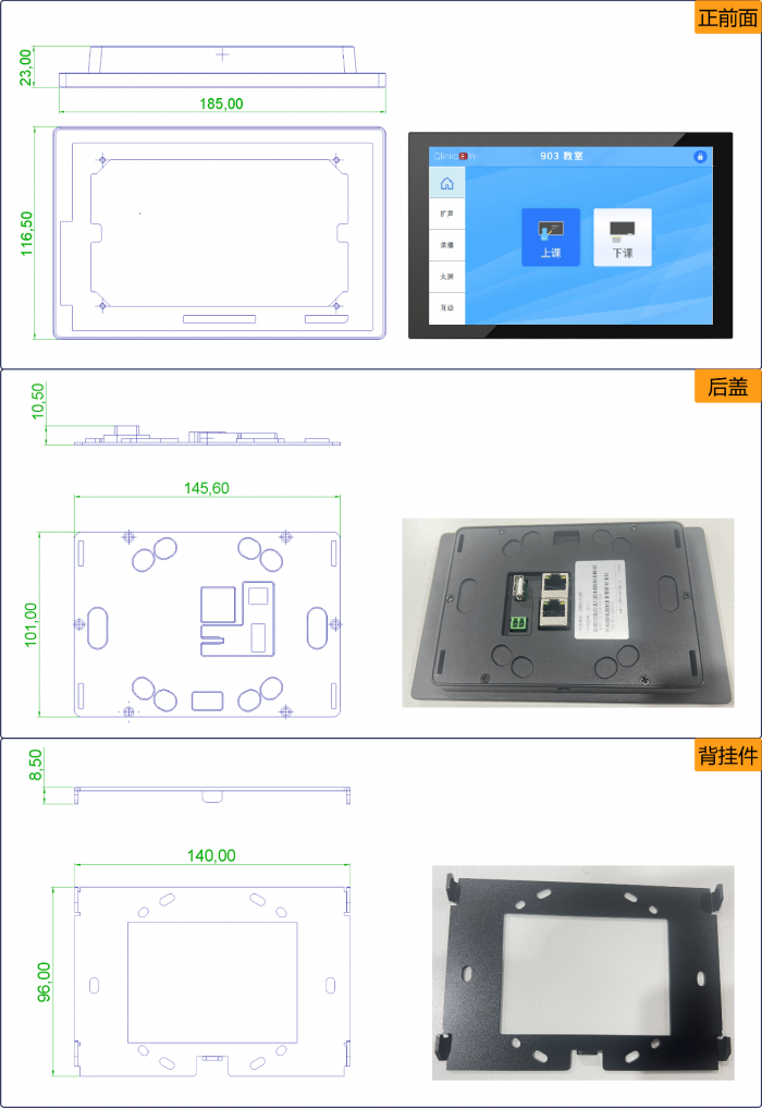 方式二:教室前端墙壁(黑板和显示屏旁边),屏下边缘距地约1.45m