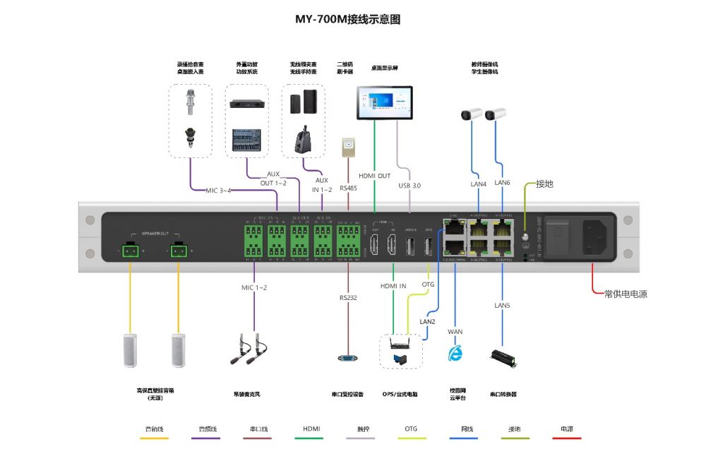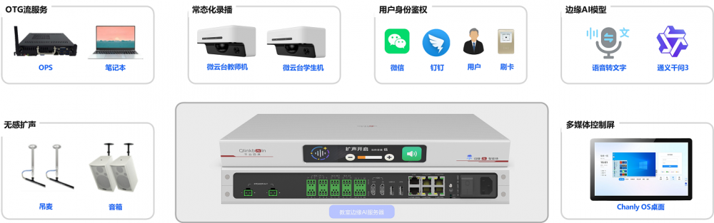 该场景使用的网关服务器为“MSG700”,支持多媒体控制、无感扩声、常态化录播、OTG流服务、语音转文字、视频直播、视频矩阵等功能。