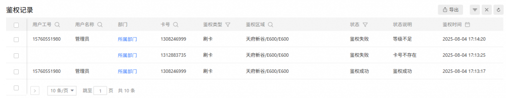 - 等级不足:用户鉴权等级低于了刷卡器鉴权等级,提高用户鉴权等级高于刷卡器等级即可;