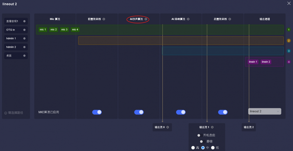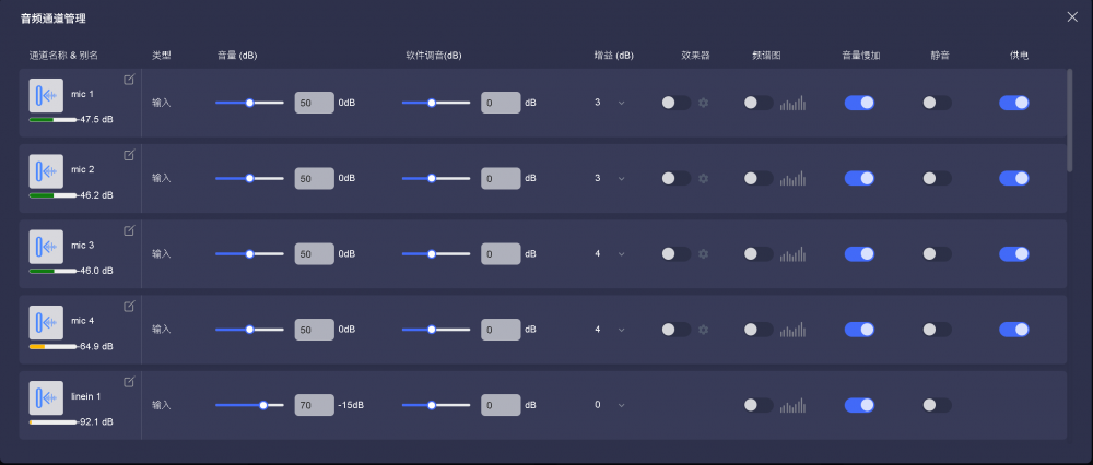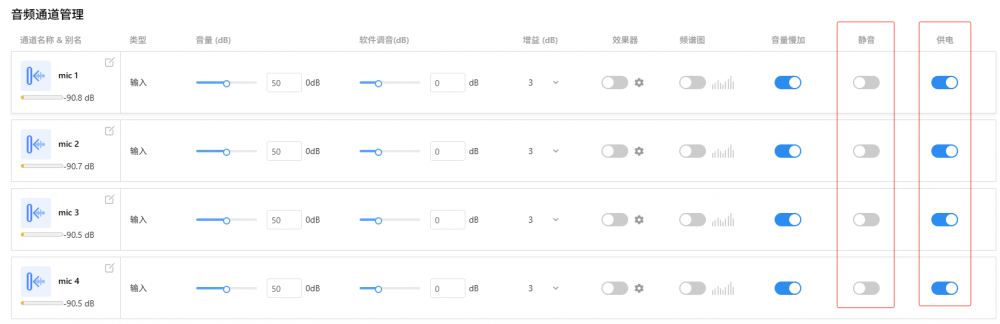 检查mic供电开关和静音开关状态(供电:开-供电,关-取消供电;静音:开-静音,关-取消静音);
