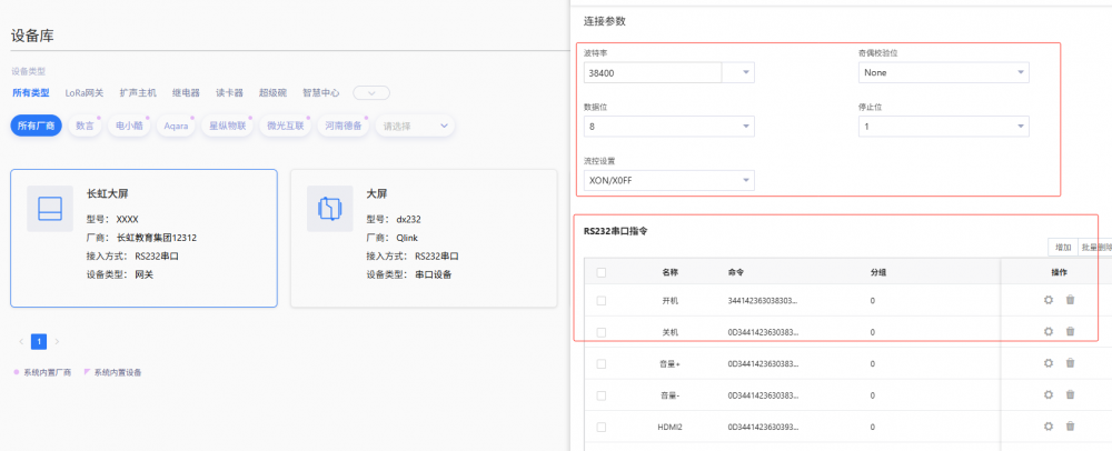 在控制台—运维中心—资源管理—设备库中找到被控的物联设备,点击物联设备在右侧的属性框中检查连接参数和串口指令是否正确