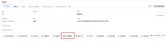 • 进入云平台【运维中心-运维管理-对应教室配置】,点击【添加物联设备】,将刚刚添加的设备加入列表:
