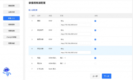 添加导播流后,可在中控屏切换摄像头和电脑的多种单画面/组合画面。除上述输入源类型,还可直接添加RTSP流。