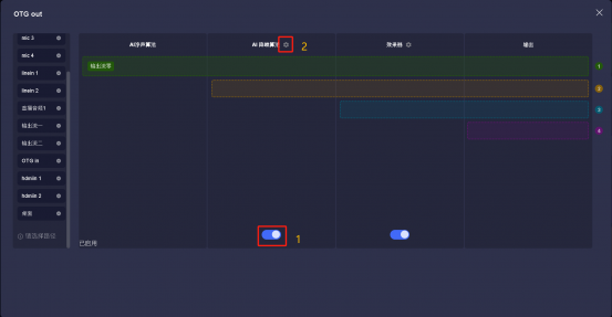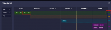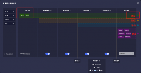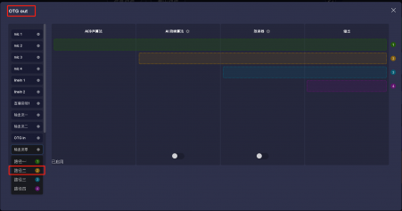 本地扩声配置:进入内置功放Line out2通道控制模式,点开混音功能,将OTG in加入路径④