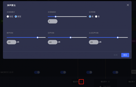 切换到美音大模型,级别0-100可调节,数值越大对于背景噪声、回声混响抑制能力越高。