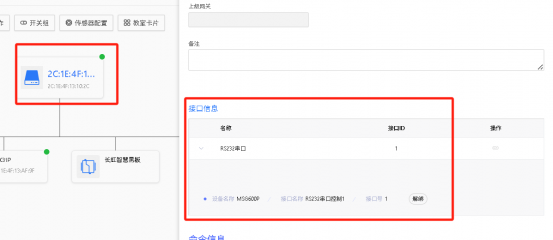 • 如该设备由终端内置串口控制,则需关联至终端对应串口下,如图: