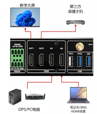 • 举例1:添加教学电脑对应的HDMI in1端口后,当检测到输入画面变化时系统自动切换导播到教学电脑画面,该事件超时无动作10秒后,自动切换回教师全景。