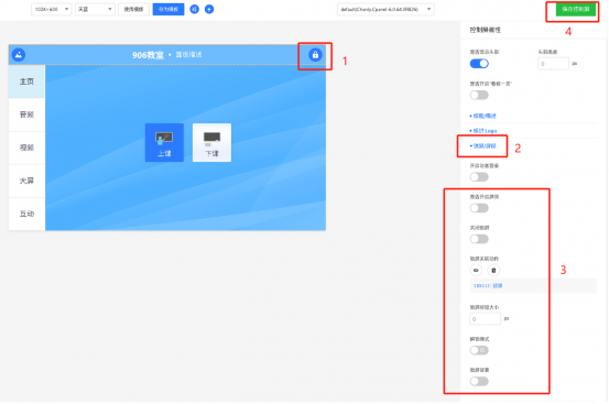 进入【云平台-运维管理-教室管理】,点击IBX32控制屏【界面配置】,拖拽添加“录播导播”控件,最后【保存控制屏】: