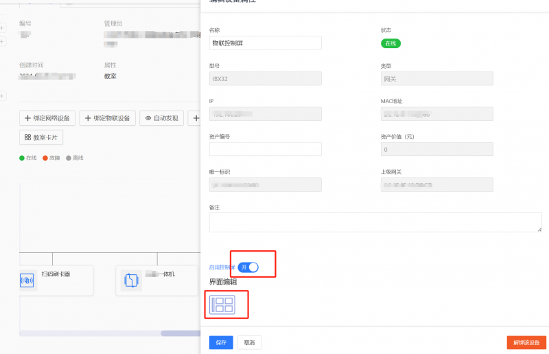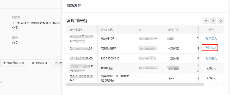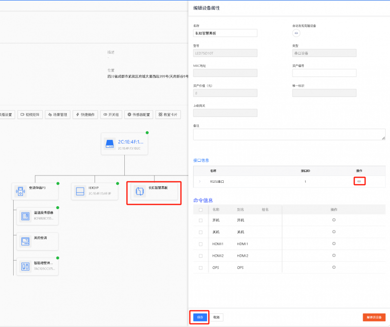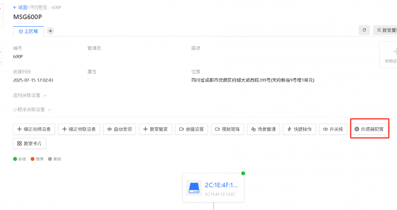 • 进入云平台【运维中心-运维管理-对应教室配置】,点击【添加物联设备】,将刚刚添加的设备加入列表: