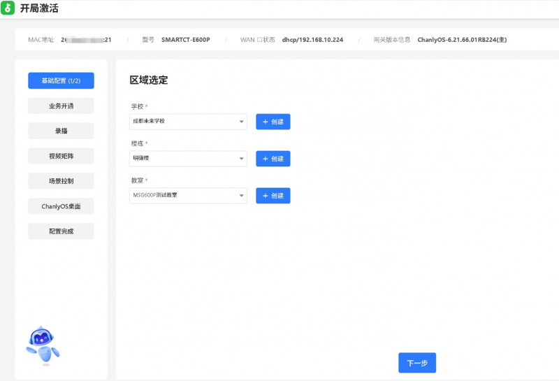 • 提供项目信息、每间教室/场所名称或编号、教室对应每台终端设备MAC、需要开通的功能业务等基础信息到景禾工作人员