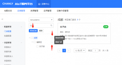 3、进入【运维中心-运维管理】分别添加区域-实例组-门店